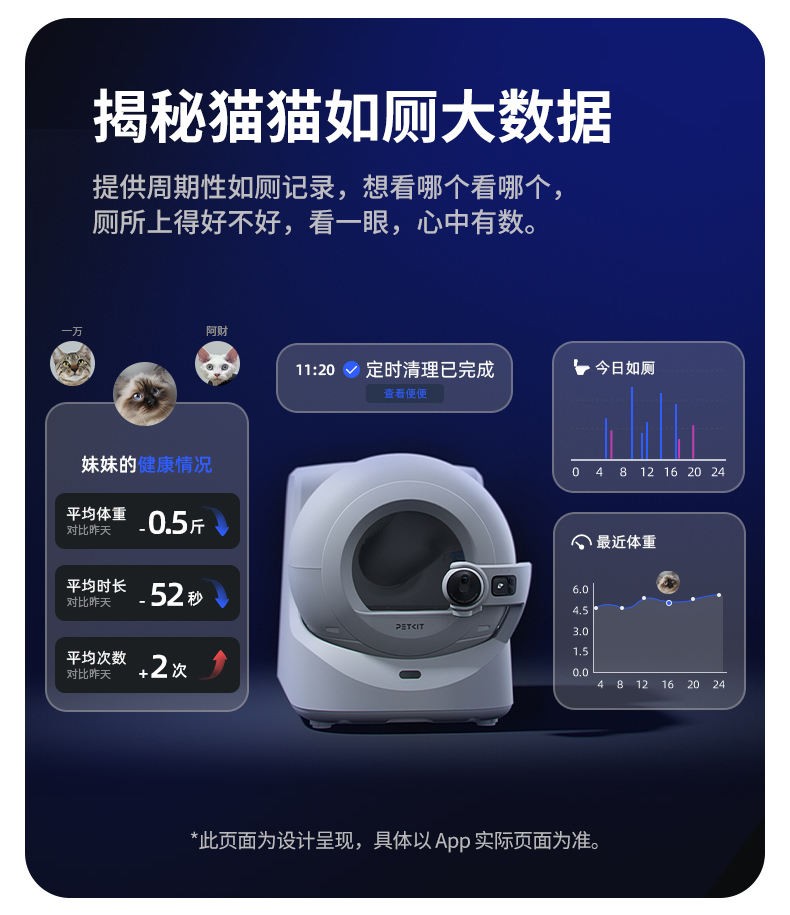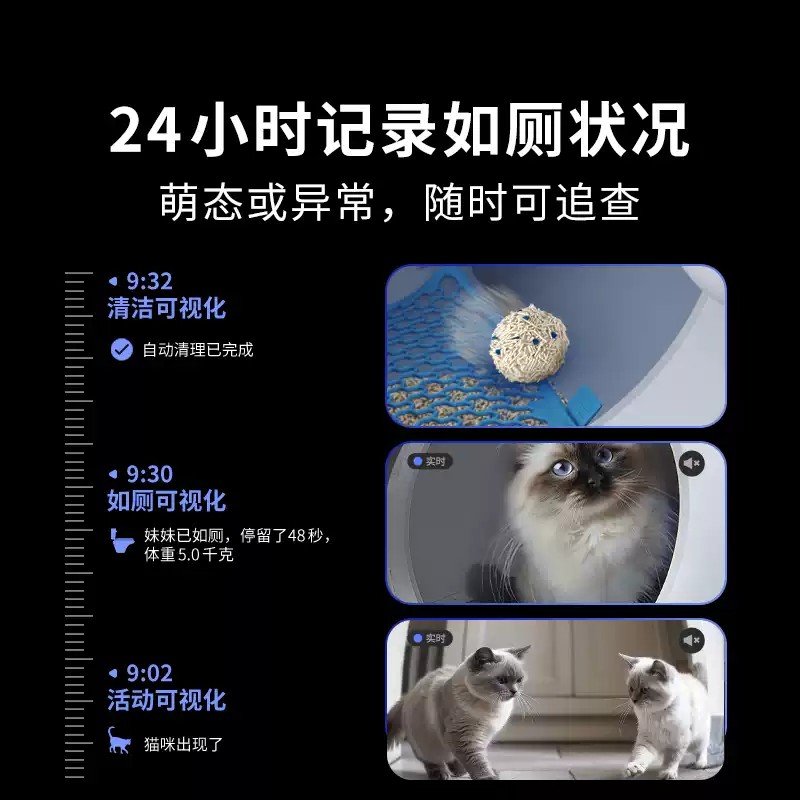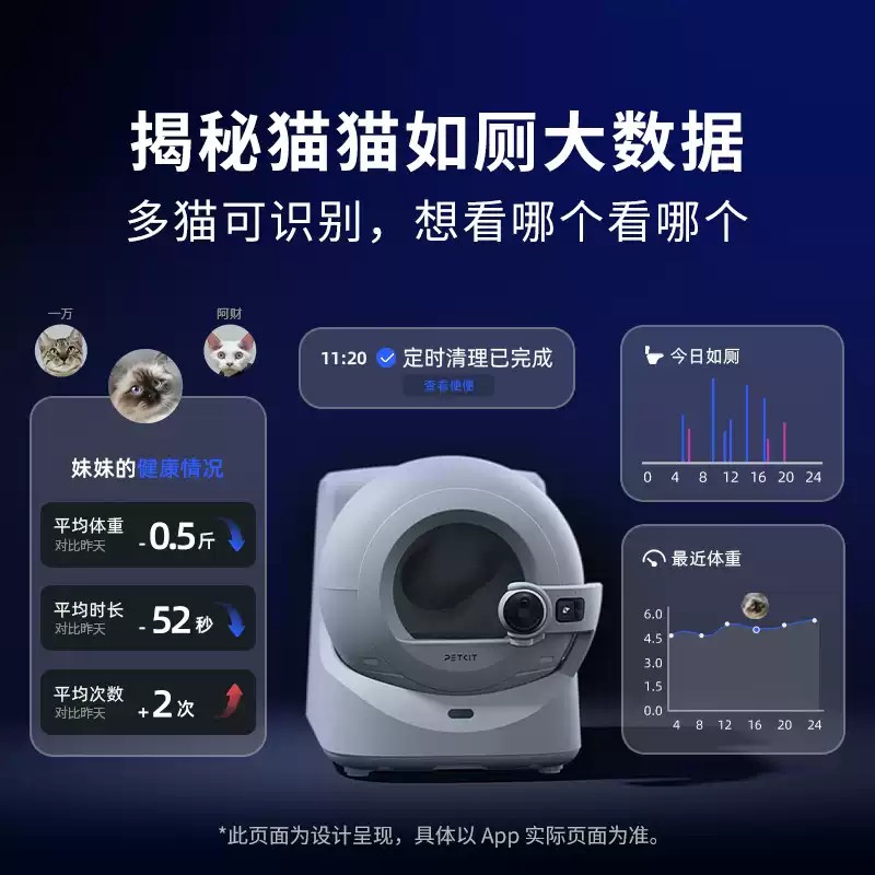 PETKIT 小佩 Purobot Ultra 全自动智能猫砂盆专为多猫家庭设计,内置 180° 旋转 AI 摄像头,可识别每只猫并记录如厕时间、时长、便便与尿块大小,自动生成健康日志。设备每次使用后会自动清洁、封口并打包,满桶后还会自动封袋换袋;10L 废物桶单猫可达约 20 天免清理。搭配 XSECURE 20 重安全防护、5G/2.4G WiFi App 控制、实时查看与双向通话、四重除味和低于 35dB 超静音运行,并兼容所有凝结型猫砂,为用户带来更干净、更省心、更智能的养猫体验。